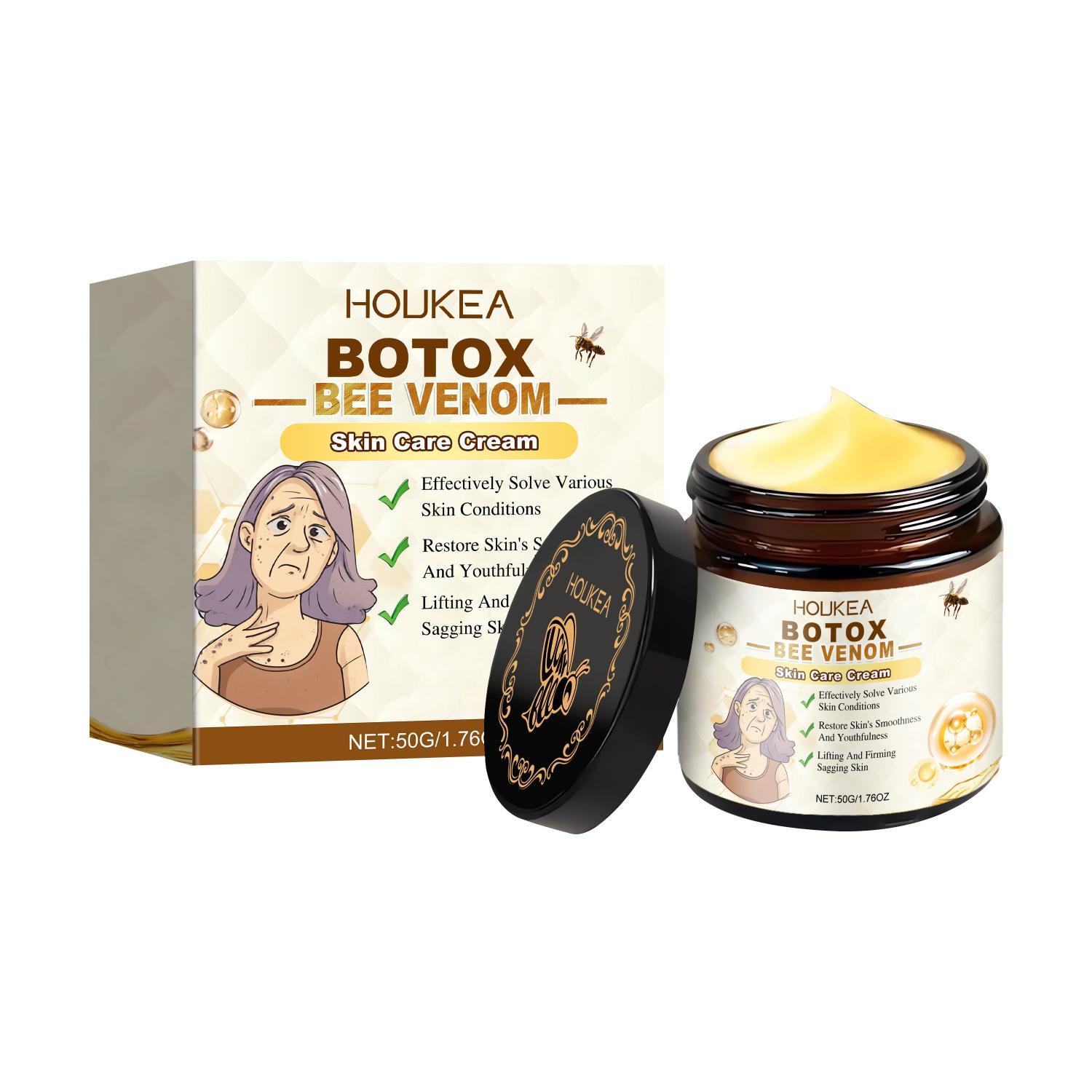 Ingredients: water, glycerin, mineral oil, glycerol stearate, 1,2-hexanediol, carbomer, triethanolamine, melittin, hyaluronic acid, acetyl hexapeptide -8, botulinum polypeptide -1.