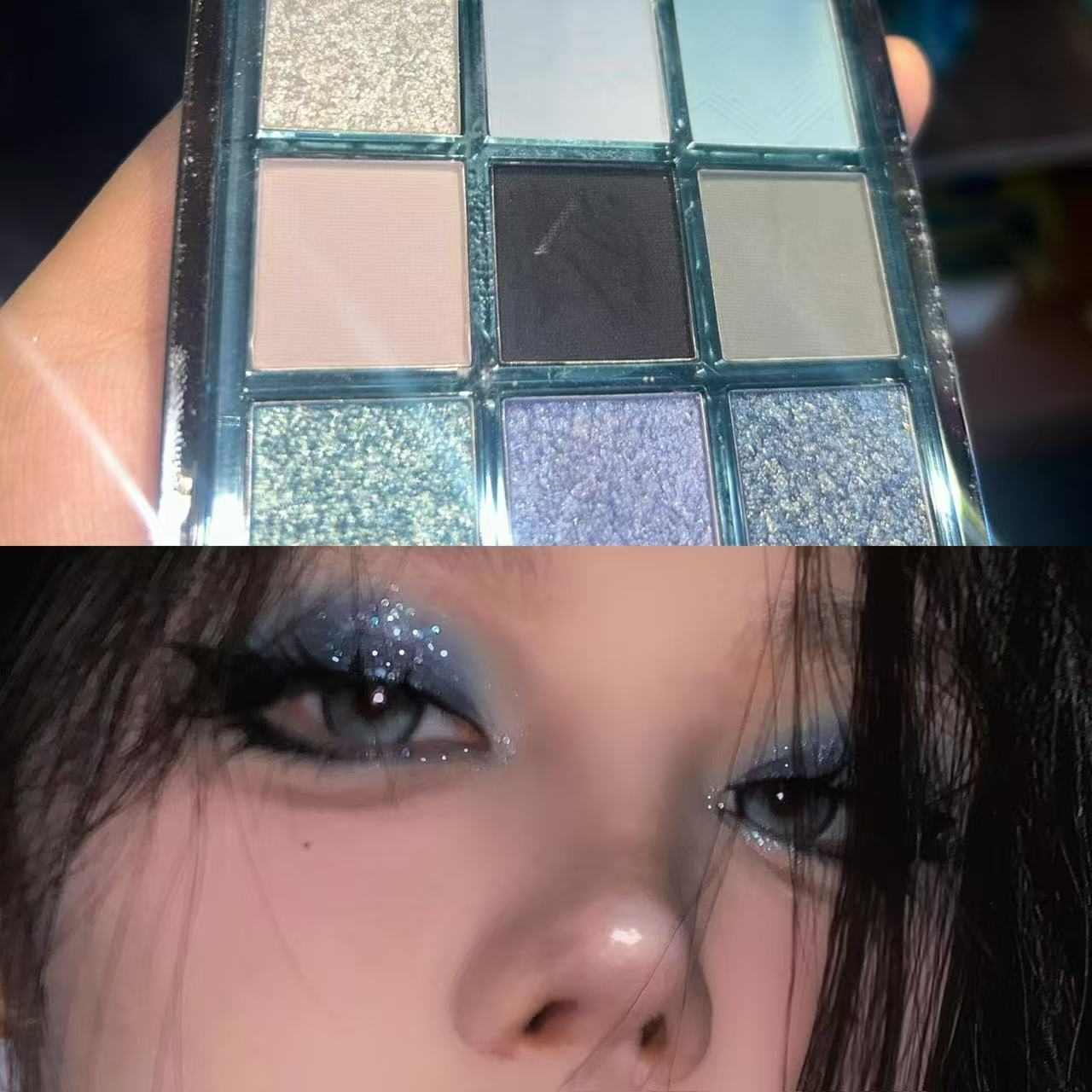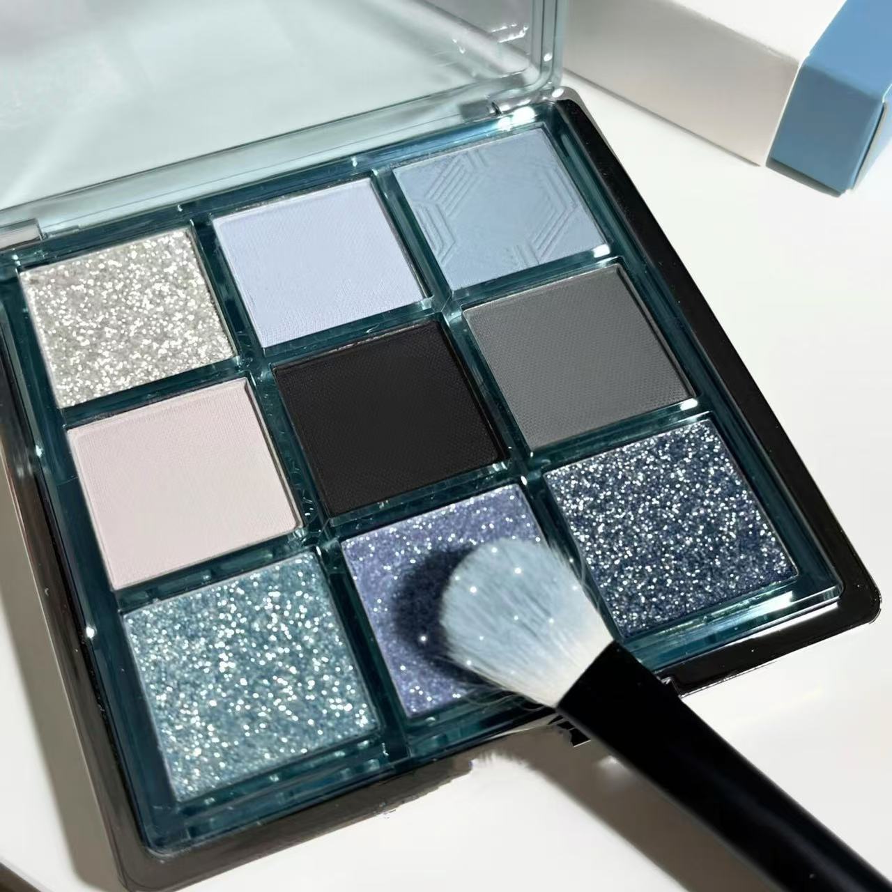 Low Saturation Ice Permeable Blue Smoked Eye Shadow Plate Matte Shimmer Diamond In The Debris Multifunctional